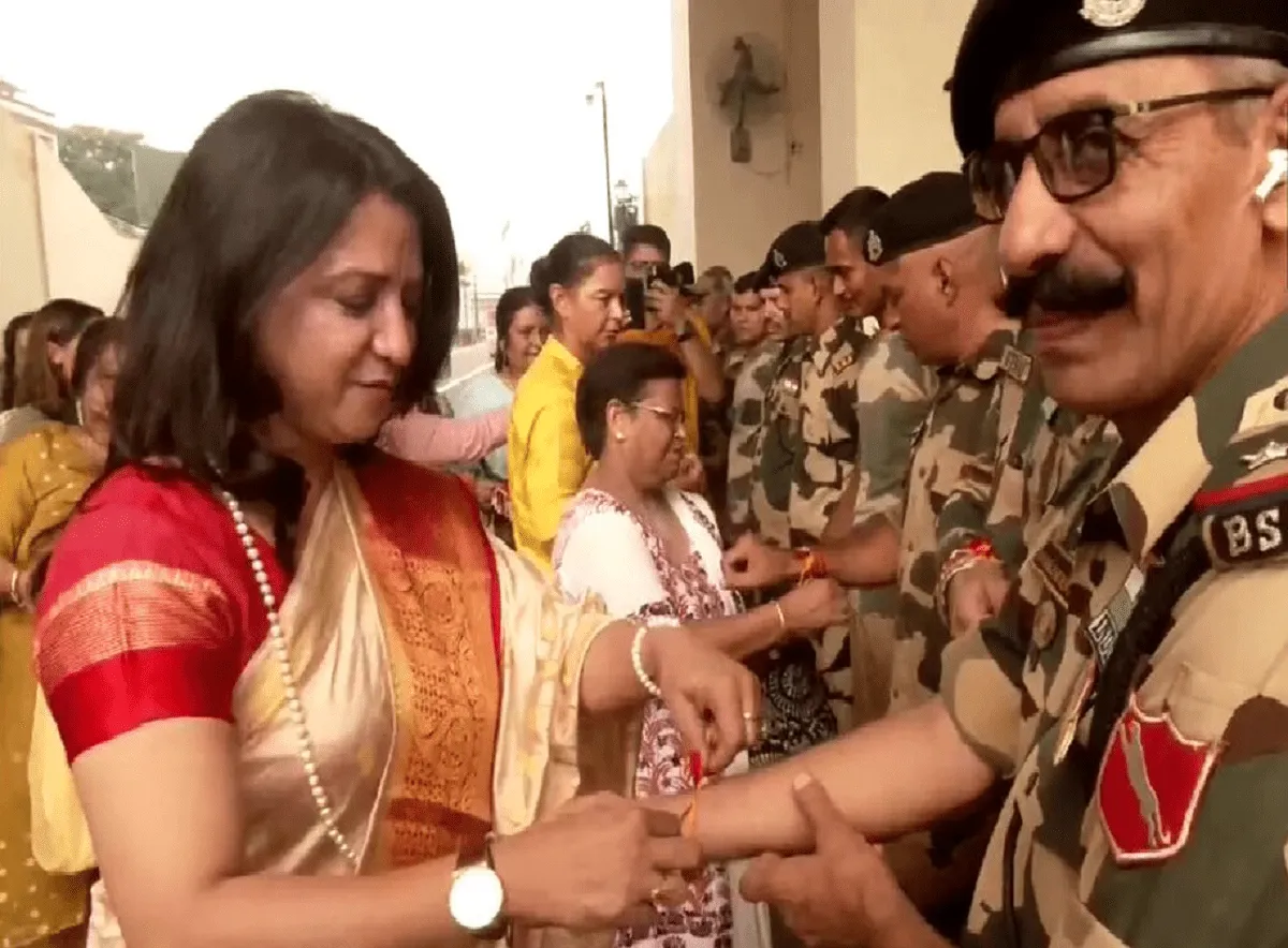 Raksha Bandhan 2024 : रक्षाबंधन के त्योहार पर, पंजाब के अमृतसर में अटारी-वाघा सीमा पर सेना के जवानों को महिलाओं ने बांधी राखी