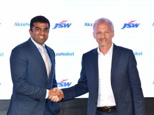 जेएसडब्ल्यू पेंट्स के प्रबंध निदेशक पार्थ जिंदल और एम्स्टर्डम स्थित एक्जोनोबेल एनवी के सीईओ ग्रेगोइरे पॉक्स-गिलौम