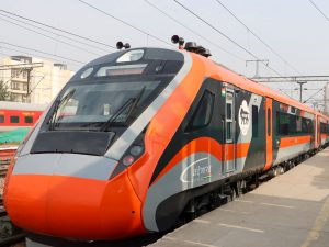 वंदे भारत एक्सप्रेस, जिसे पहले ट्रेन 18 के नाम से जाना जाता था, भारतीय रेलवे की एक सेमी-हाई स्पीड ट्रेन है। यह पूरी तरह से भारत में डिजाइन और निर्मित होने वाली पहली ट्रेन है। वंदे भारत एक्सप्रेस 160 किमी/घंटा की औसत गति से यात्रा करती है, जो इसे भारत की सबसे तेज ट्रेनों में से एक बनाती है। इसमें स्वचालित दरवाजे, 360 डिग्री घूमने वाली सीटें, और बड़ी खिड़कियां हैं, जिससे यात्रियों को बेहतर दृश्यता मिलती है। इसके अलावा ट्रेन में वायरलेस चार्जिंग, ऑनबोर्ड वाई-फाई, और बायोवैक्यूम शौचालय जैसी सुविधाएँ उपलब्ध हैं। वंदे भारत एक्सप्रेस भारतीय रेलवे की आधुनिकता और प्रौद्योगिकी की दिशा में एक महत्वपूर्ण कदम है, जो यात्रियों को तेज, सुरक्षित, और आरामदायक यात्रा का अनुभव देती है।