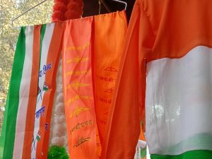 दिल्ली के सदर बाजार में झंडों का कारोबार करने वाले लक्ष्य नागपाल भी भगवान राम के चित्र और ‘जय श्रीराम’ का नारा लिखे झंडों और पटकों के ऑर्डर पूरे करने में जुटे हैं।