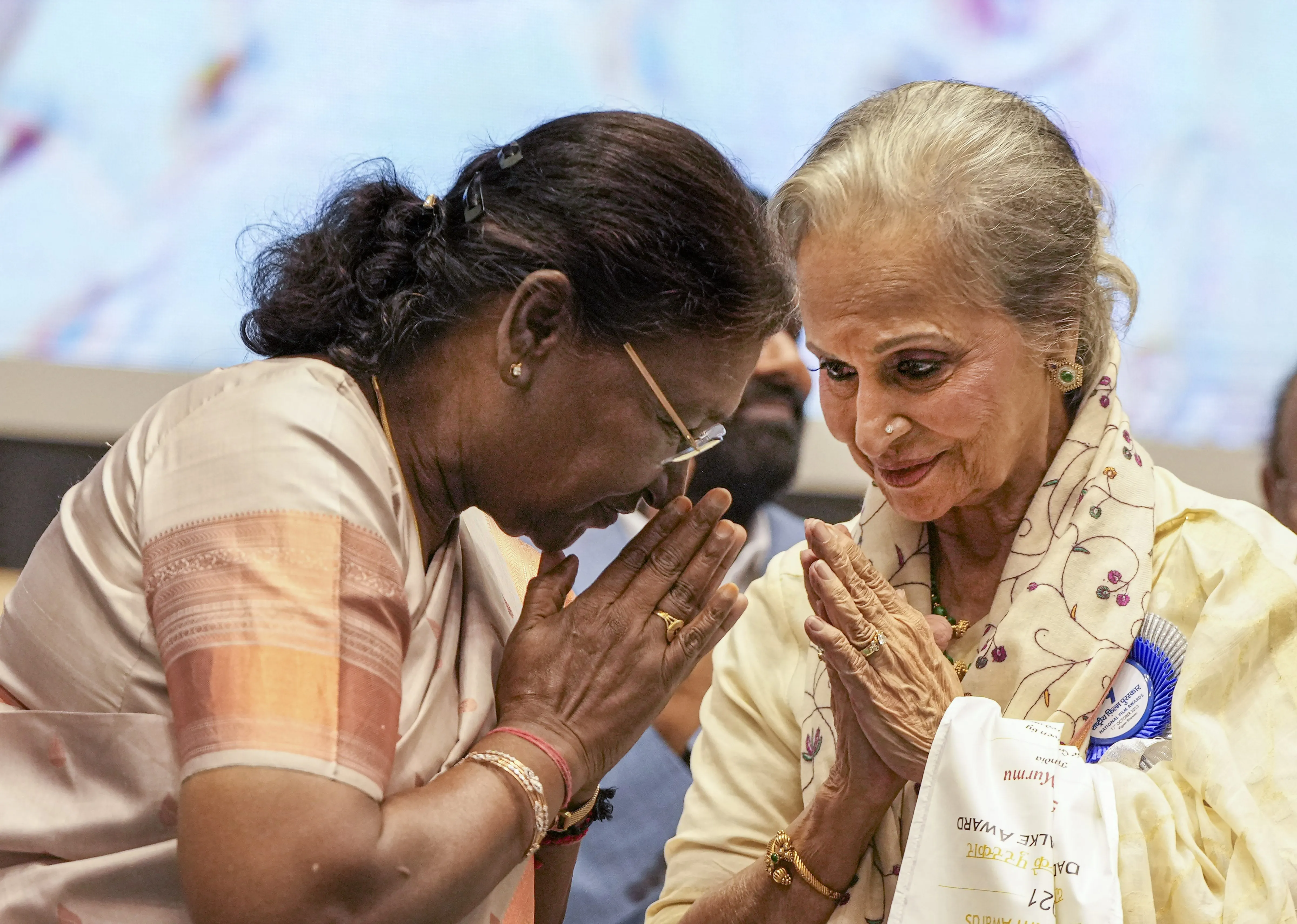राष्ट्रपति द्रौपदी मुर्मू ने मंगलवार को दिग्गज अभिनेत्री वहीदा रहमान को फिल्म जगत का सर्वोच्च दादासाहेब फाल्के पुरस्कार प्रदान किया। भारतीय सिनेमा जगत का यह सर्वोच्च पुरस्कार ग्रहण करने वाली वहीदा रहमान आठवीं महिला कलाकार हैं।