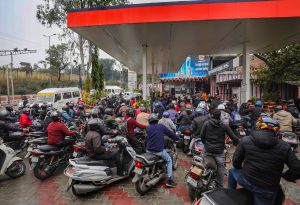 पेट्रोल पंपों पर लगी लंबी कतारें