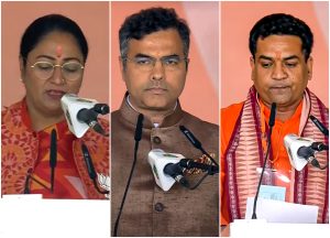 भारतीय जनता पार्टी (भाजपा) की नेता रेखा गुप्ता ने गुरुवार को दिल्ली के रामलीला मैदान में मुख्यमंत्री पद की शपथ ली। उनके साथ परवेश वर्मा, मनजिंदर सिंह सिरसा और कपिल मिश्रा ने भी कैबिनेट मंत्री के रूप में शपथ ग्रहण की।