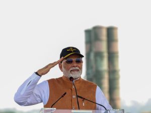 प्रधानमंत्री नरेंद्र मोदी पाकिस्तान से लगी सीमा से 100 किलोमीटर की दूरी पर आदमपुर एयरबेस पर