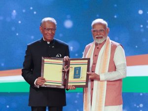 कार्यक्रम में मॉरीशस के प्रधानमंत्री नवीनचंद्र रामगुलाम ने प्रधानमंत्री मोदी को देश का सर्वोच्च सम्मान ‘द ग्रांड कमांडर ऑफ ऑर्डर ऑफ स्टार ऐंड की ऑफ इंडियन ओशन’ प्रदान करने का ऐलान किया। प्रधानमंत्री मोदी ने मॉरीशस के लोगों और सरकार को देश का सर्वोच्च नागरिक सम्मान प्रदान करने के लिए धन्यवाद दिया। उन्होंने कहा कि मैं इस निर्णय को बहुत ही सम्मान के साथ स्वीकार करता हूं। यह भारत और मॉरीशस के बीच ऐतिहासिक संबंधों का सम्मान है। मोदी यह प्रतिष्ठित पुरस्कार पाने वाले पहले भारतीय हैं। यह पुरस्कार भारत और मॉरीशस के बीच संबंधों को मजबूत करने में उनके योगदान को मान्यता देता है। यह किसी अन्य राष्ट्र द्वारा प्रधानमंत्री मोदी को प्रदान किया गया 21वां अंतरराष्ट्रीय पुरस्कार है।