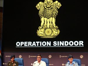 विदेश सचिव विक्रम मिस्री, कर्नल सोफिया कुरैशी और विंग कमांडर व्योमिका सिंह 7 मई को नई दिल्ली में 'ऑपरेशन सिंदूर' के बारे में आयोजित प्रेस कॉन्फ्रेंस के दौरान | फोटो: PTI