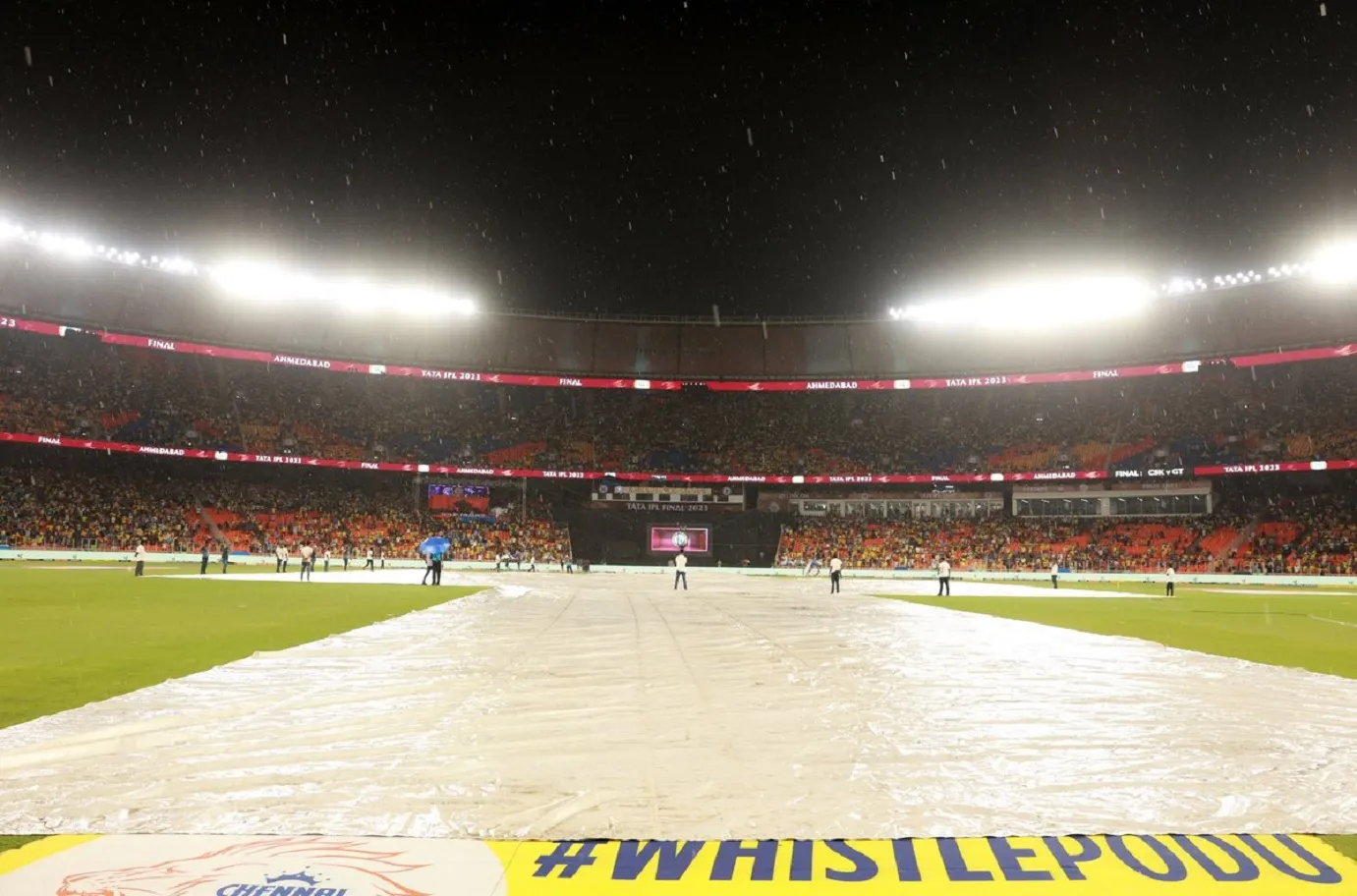 भारी बारिश के कारण चेन्नई सुपर किंग्स और गुजरात टाइटंस के बीच इंडियन प्रीमियर लीग 2023 का फाइनल अब ‘रिजर्व डे’ सोमवार को यहां नरेंद्र मोदी स्टेडियम पर खेला जायेगा। यह घोषणा स्थानीय समयानुसार रात 10 बजकर 55 मिनट पर की गई।