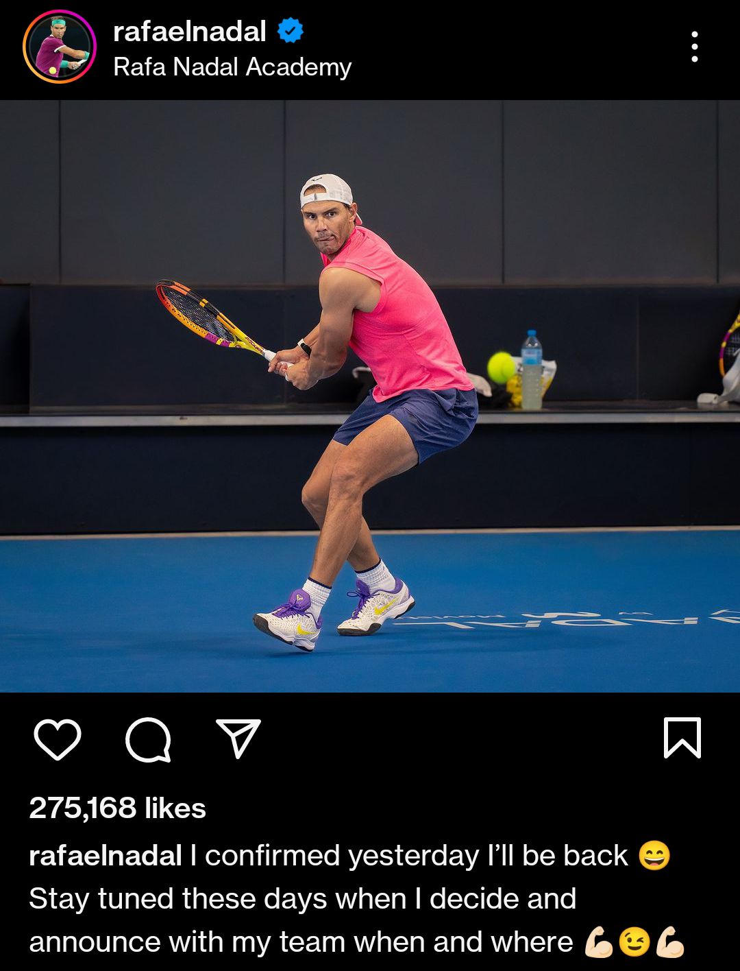 नडाल ने गुरुवार को सोशल मीडिया पर लिखा,‘‘मैंने कल पुष्टि की कि मैं वापसी करूंगा। मेरे साथ बने रहे।’’