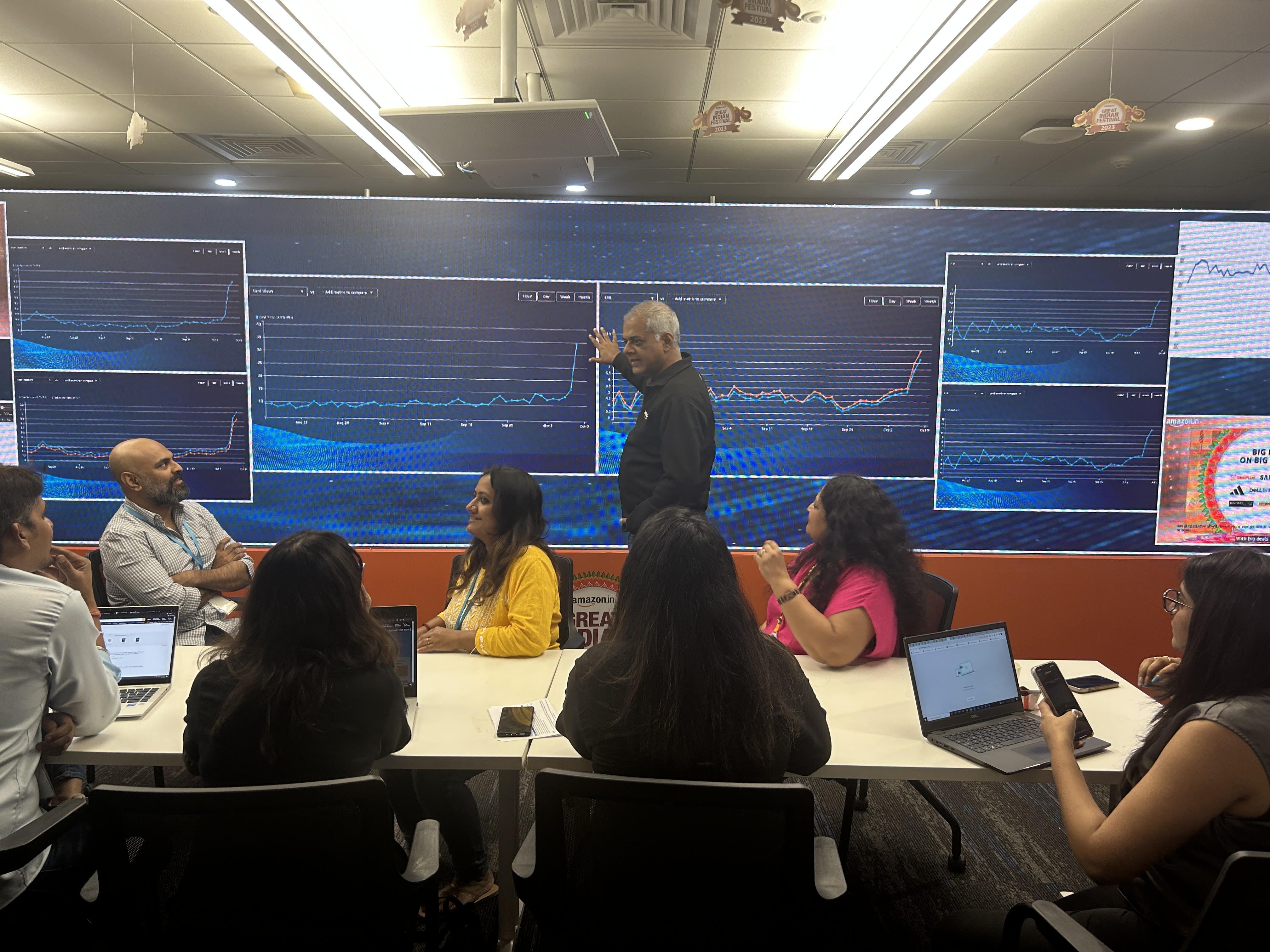 एमेजॉन लिखे काले जैकट, जींस और स्नीकर्स पहने तिवारी कई बार अलग-अलग वॉर रूम में जाते दिखे। ये वॉर रूम 24 घंटे चलते हैं। बड़े स्क्रीन वाले इन वॉर रूम में आंकड़े और एनालिटिक्स दिखते रहते हैं। इसमें वेबसाइट पर आने वाले ग्राहकों की भीड़ (ट्रैफिक), बिक्री की संख्या और उत्पाद शामिल हैं जिनके लिए ग्राहक खरीदारी कर रहे हैं।